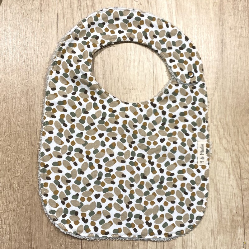 Babero de algodón y rizo de algodón, para bebés a partir de 6 meses hasta 12-18 meses. Reverso de toalla. Cierre a presión. Tamaño 33 cm. x 21,5 cm.